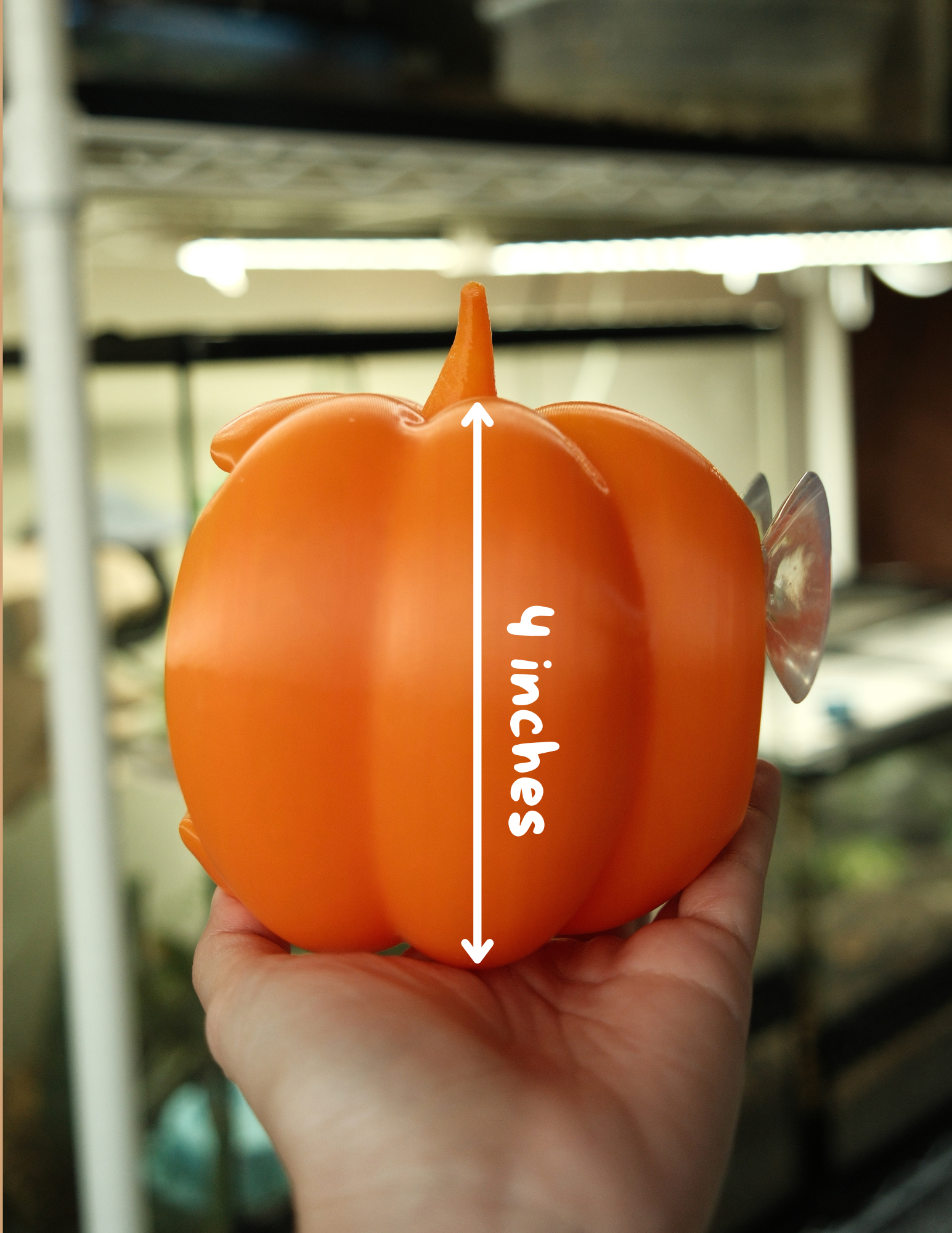 Just in time for fall is our hanging pumpkin hide for crested geckos, dumpy frogs, and many other species. This spooky addition to their habitat not only serves as a cozy resting spot but also adds a touch of natural beauty to their enclosure. Crafted with precision and care, this unique pumpkin house will surely be a focal point in your pet's living space.